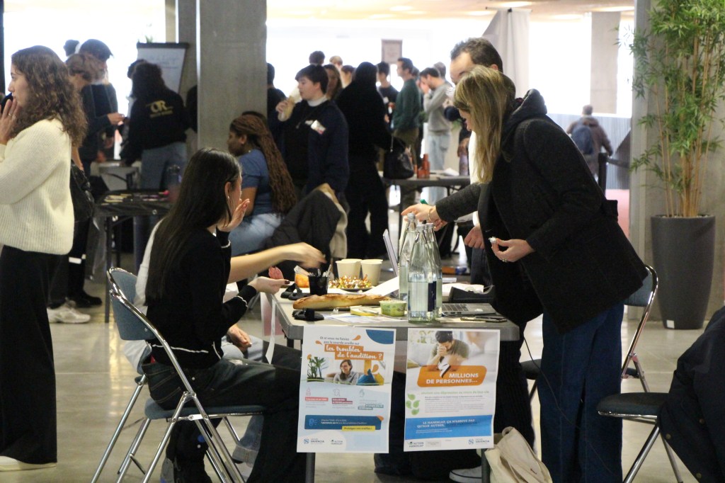 Cette année, c’est le thème “encourager la prise de parole et dépasser les préjugés liés au handicap” qui a été retenu. L’événement a débuté avec sa traditionnelle table ronde, réunissant élèves et professionnels autour de cette problématique sociétale. Puis, tout au long de la journée, le Handi Day fait régner effervescence et bonne humeur dans l’école. Parmi les stands des entreprises et associations, les participants s’essayent au tennis fauteuil, peignent les yeux bandés ou encore découvrent les fonctionnalités d’un bureau ergonomique conçu pour les personnes atteintes d’un handicap moteur.